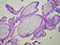 PHM trophoblastic hyperplasia, proliferation commensurate to size and "tagging". Proliferation is just enough to keep up with the size of the villi
