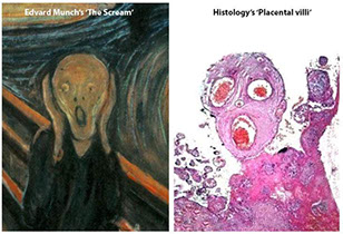 - villous scalloping (irregular shape with trophoblast villi goes into villous stroma)