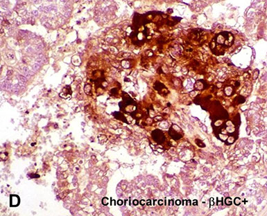 IHC: (+) hCG (stronger than partial, less than choriocarcinoma), p53, CK, Inhibin, HLA-G
