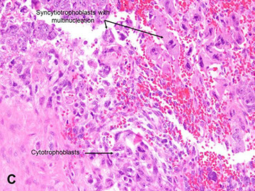 - trophoblastic cells of the chorion have variable sizes and shapes and are occasionally multinucleated