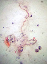 Micro: Small cells (isolated, in chains and clusters) - about the size of lymphocytes