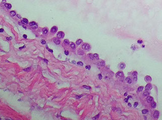 - can have reactive mesothelial proliferation in wall of cysts that can look malignant