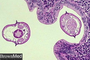 - have lots of vessels, and can whorl around vessels (onoin-skinning), can have lots of eos