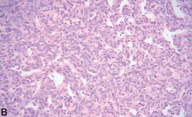 Monophasic tumor is densely packed c uniform spindle cells in fascular sheets c pseudorosettes; also have abundant hemangiopericytomatoid vascularity and freq mits