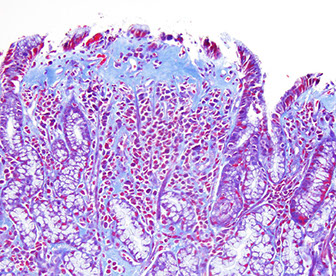 - homogenous pattern throughout stomach, covered in mucus, and contains highly intertwined glands