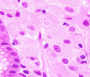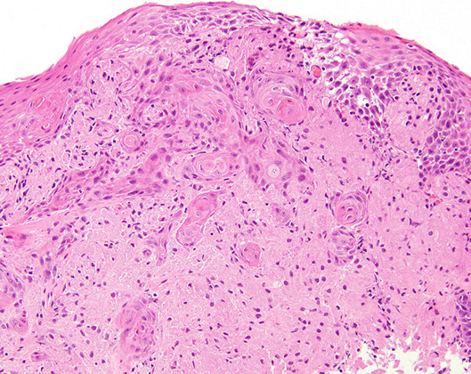 Granular cell tumor with striking pseudoepitheliomatous hyperplasia which can look like invasive SCC (but its not!!!) [1]
