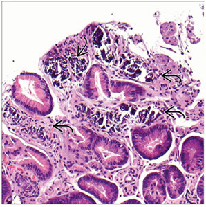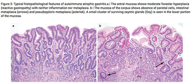 2) Assoc c ZE syndrome (gastrin-secreting neoplasm, usually in pancreas) and MEN-I; causing hyperplasia of intract parietal cells